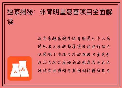 詹姆斯深夜私密训练!暴扣新招数曝光,引发球迷热议。在训练中,詹姆斯展示了各种新招数,尤其是暴扣技巧更是让人眼前一亮。本文将从四个方面对詹姆斯的深夜私密训练进行详细阐述,揭秘他的新招数。 1、詹姆斯的训练内容 詹姆斯的私密训练主要集中在进攻技巧的提升上,包括投篮动作、运球变化、篮下暴扣等方面。他每天都会在深夜进行长时间的训练,不断磨砺自己的技术,力求在比赛中取得更好的表现。 在训练过程中,詹姆斯会...